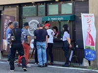 ジェラートに並ぶオヂサンたちと紅一点。 |