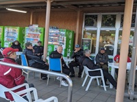 海ほたるの横風がココで効いてくるとは思いませんでしたが、この日海は大しけ。漁師さんが海に出られなかったらしく...。 |
