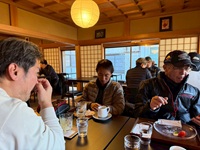 まとまりのないバイク乗りたちの注文をまとめるのに一苦労しましたが(苦笑)、なんとか全員、喫茶タイムを満喫 |